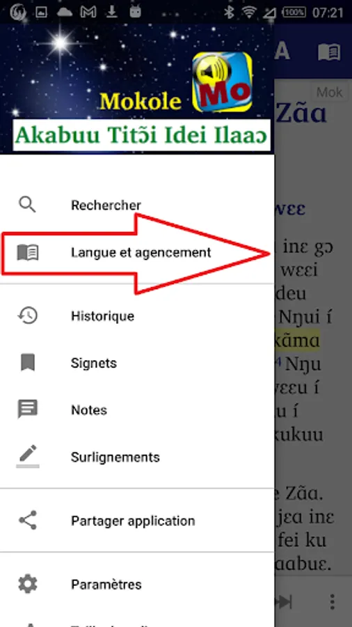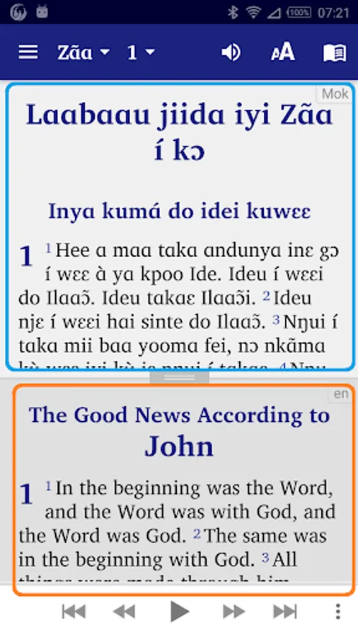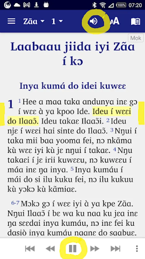 This application presents the New Testament translated into the Mokolé language spoken in northern Benin in the Kandi region.