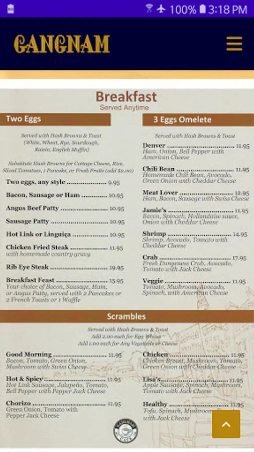 Gangnam Cafe is open 6 days of week for breakfast and lunch offering a wide variety of dishes in a casual atmosphere.
