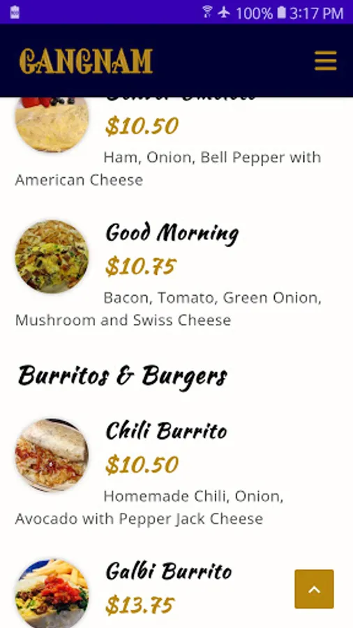 Our menu include dish selections from Traditional American, Little bit of Italian, Mediterranean, and Korean cuisines.