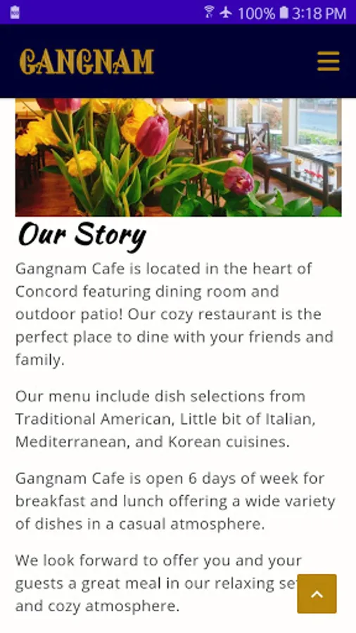 Gangnam Cafe is located in the heart of Concord featuring dining room and outdoor patio! Our cozy restaurant is the perfect place to dine with your friends and family.
