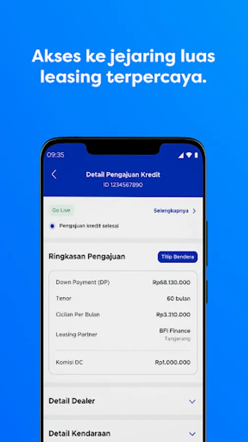 - Access to Moladin's extensive trusted leasing network for car loan applications