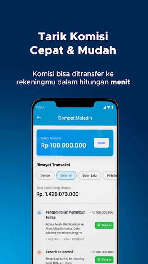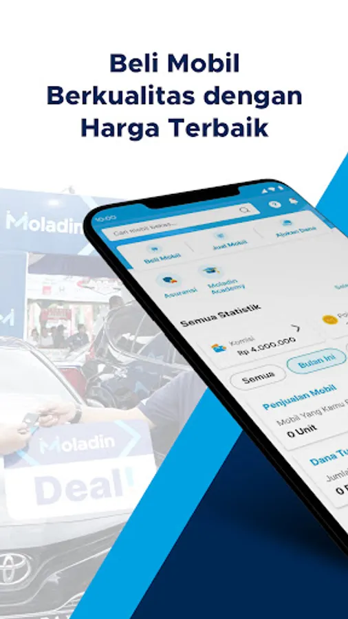 Moladin is more than just an ordinary car deals app. Moladin is a mainstay assistant for car agents who want to increase their income and buy and sell cars easily and practically. With a community of agents and business partners spread throughout Indonesia, you will be connected with other Moladin agents so that your profits can be optimized.