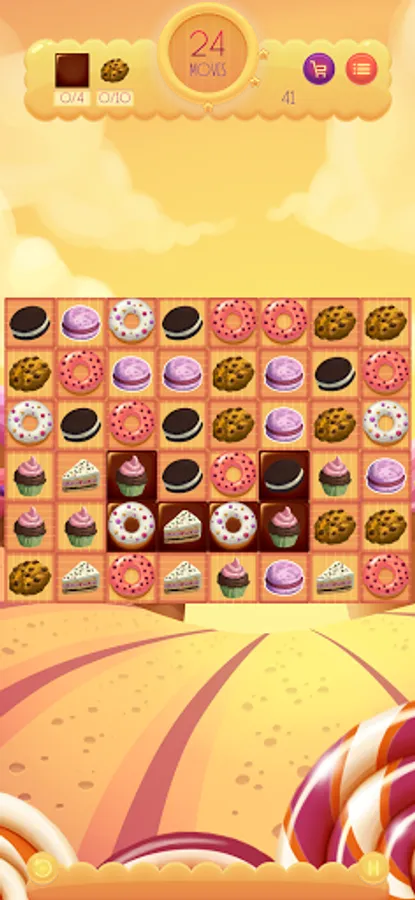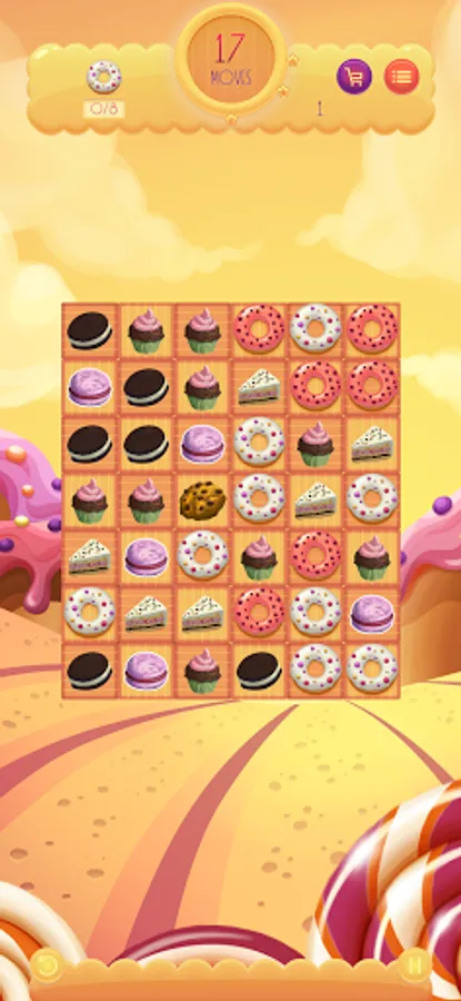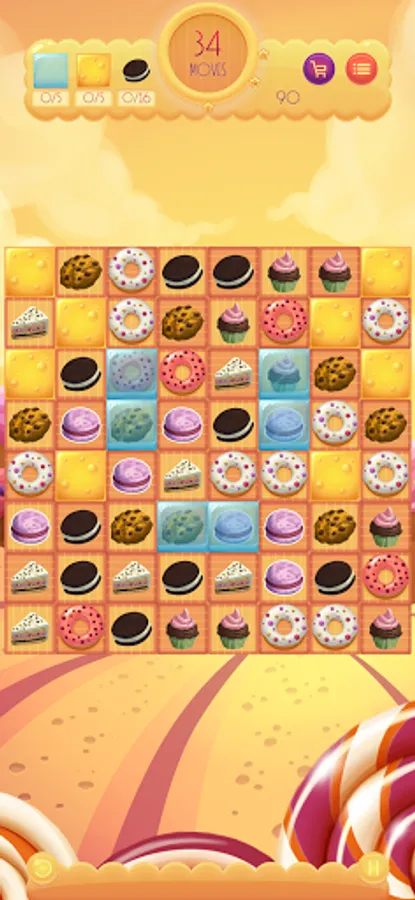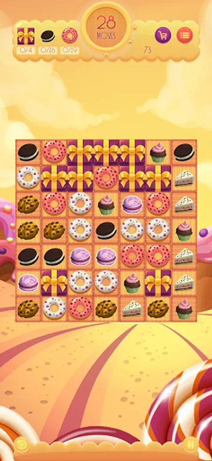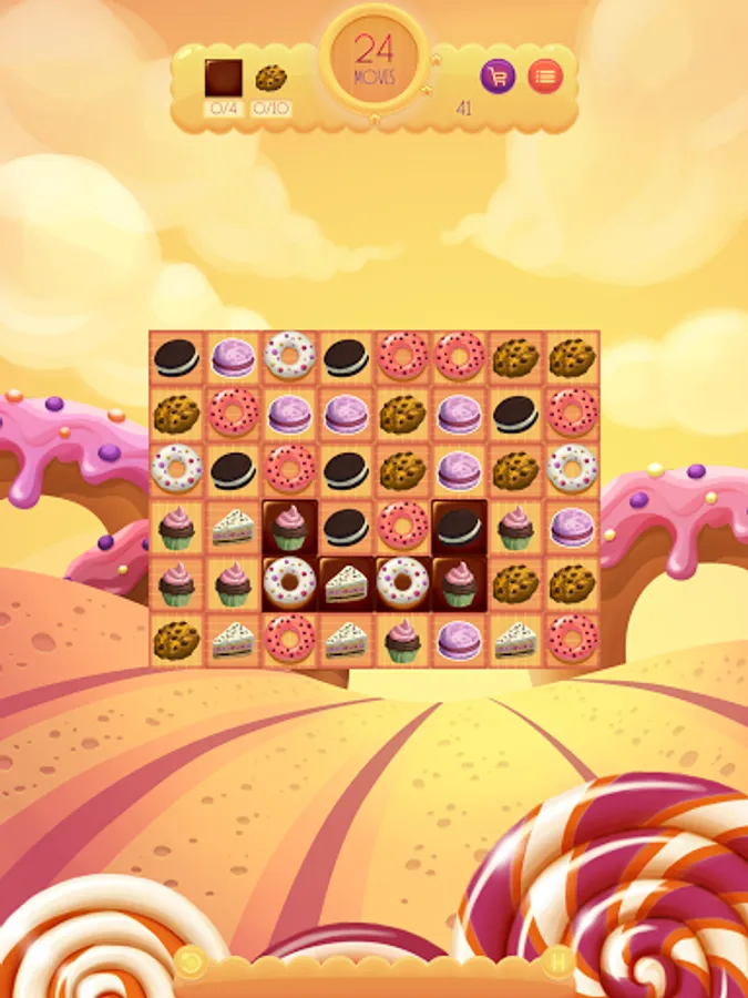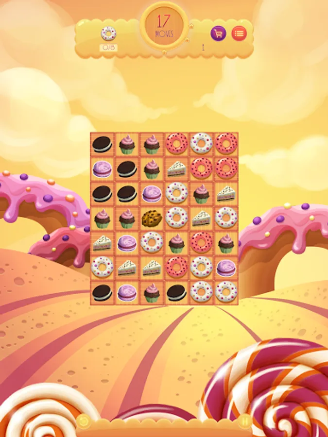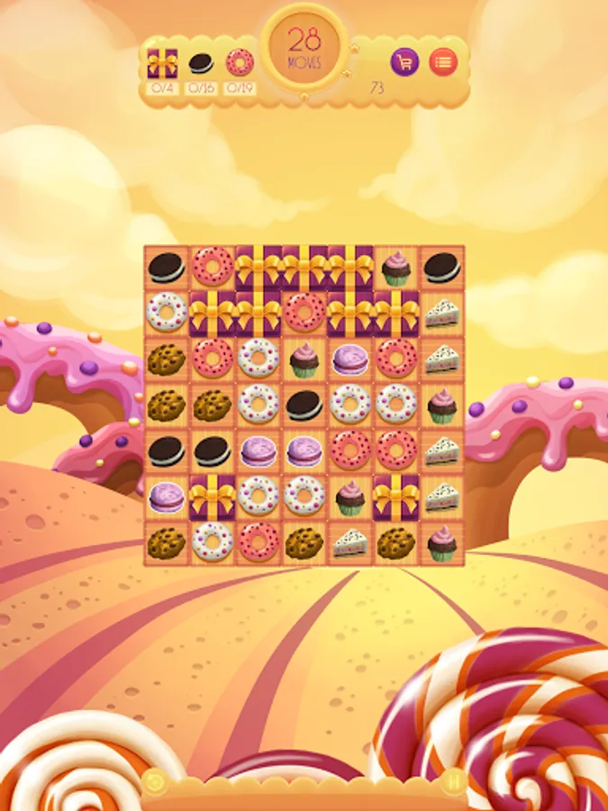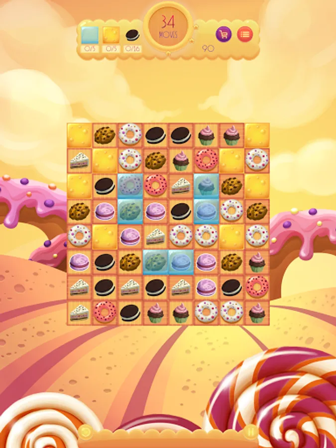 Match three sweets to collect them. Match four or more sweets horizontally or vertically to collect the horizontal or vertical row. Match 5 or more sweets cross to collect all the sweets of the horizontal and vertical row.