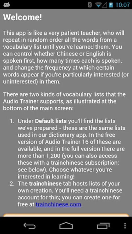 ★ You can also download word lists from your personal trainchinese account and receive words for audio training from the trainchinese Dictionary and Flash cards application for Android.