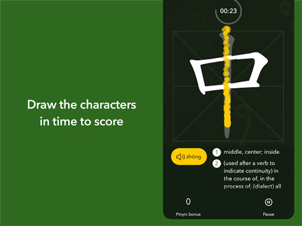 ✓ Whatever your writing level, you'll improve with trainchinese Chinese Writer. Beginners can start with simpler characters and at a slower pace, while experienced students will blaze their way through those HSK 4 hanzi!