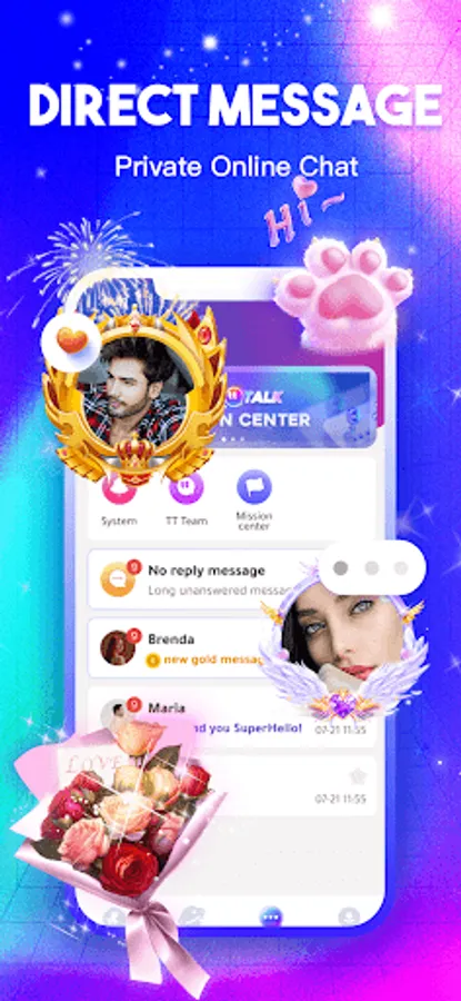 In TalkTalk, you will find that there are gorgeous gift effects, so that you can fully express your mind and personality when you meet the person you like, and also show your wealth in front of others. Complete the system tasks, you can get free game coins every day, every day you have a free opportunity to send gifts to your favorite people.