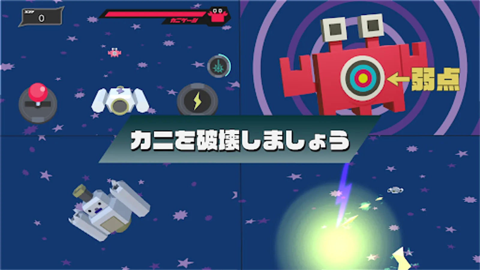 Operate a spaceship with the power of electric and drive out "crabs"!