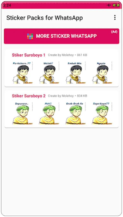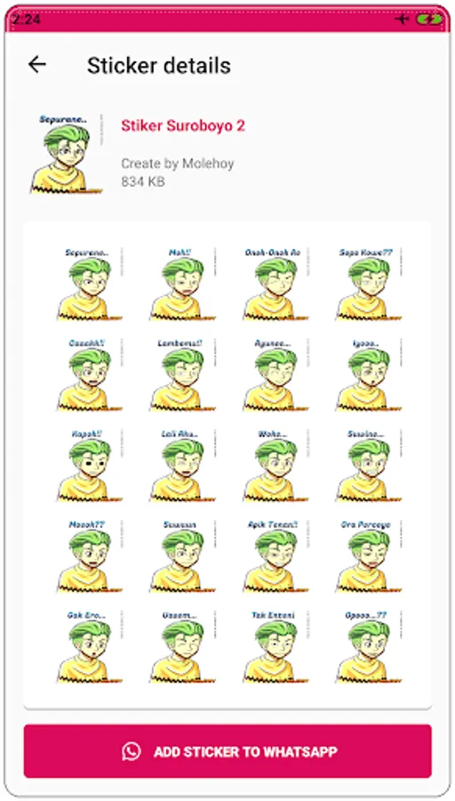 Hi Guys .. Besides Sundanese Stickers, Betawi Stickers and Ngapak Stickers Present at PlayStore, this time Molehoy re-launched WA stickers for whatsapp Indonesia entitled Suroboyo WAStickerApps Sticker . Curious about any funny stickers in it ??, Let's immediately have a collection of the latest and best WA stickers that are sure to be fun when used chatting.