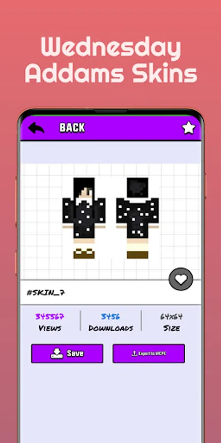 Changing your character's appearance is a breeze with Wednesday Addams Skin for Minecraft. Simply download the skin pack and apply it to your Minecraft account. Get ready to embrace the darkness and explore the world of Minecraft in style.