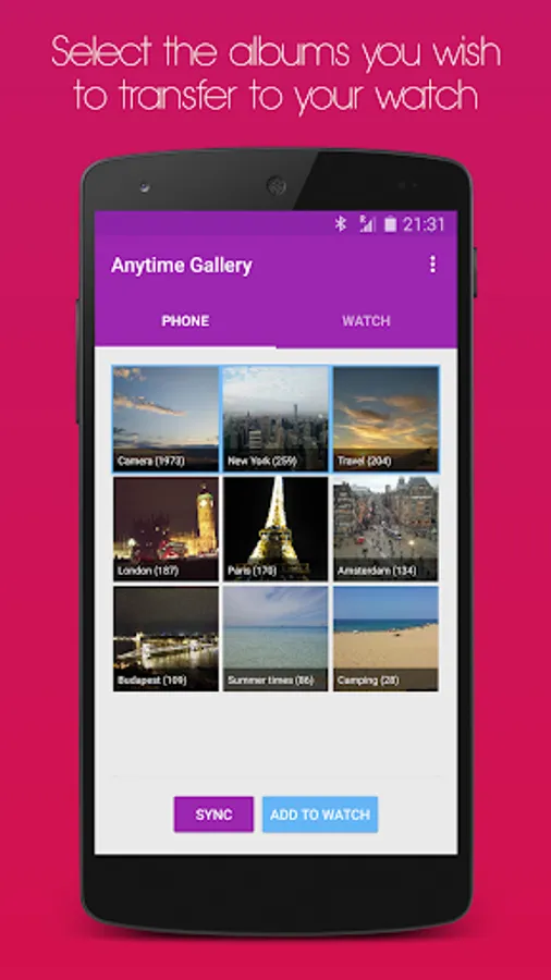 ✔ Select the albums you wish to transfer and sync