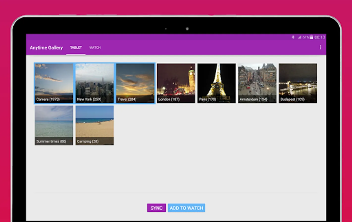 With the free version of the app you can transfer and sync up to 20 images. For an unlimited number of albums and images on your watch, upgrade to the premium version through a single in-app purchase. If you upgrade and you change your mind later, don't worry. Simply send us an email and we will instantly refund you. We offer a lifetime return policy.