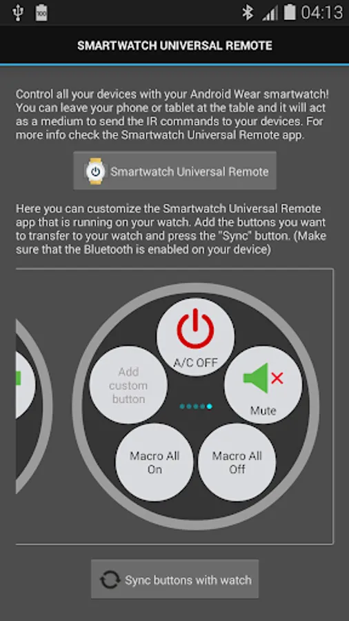 The first app that allows you to use your Android Wear watch as a universal remote control!