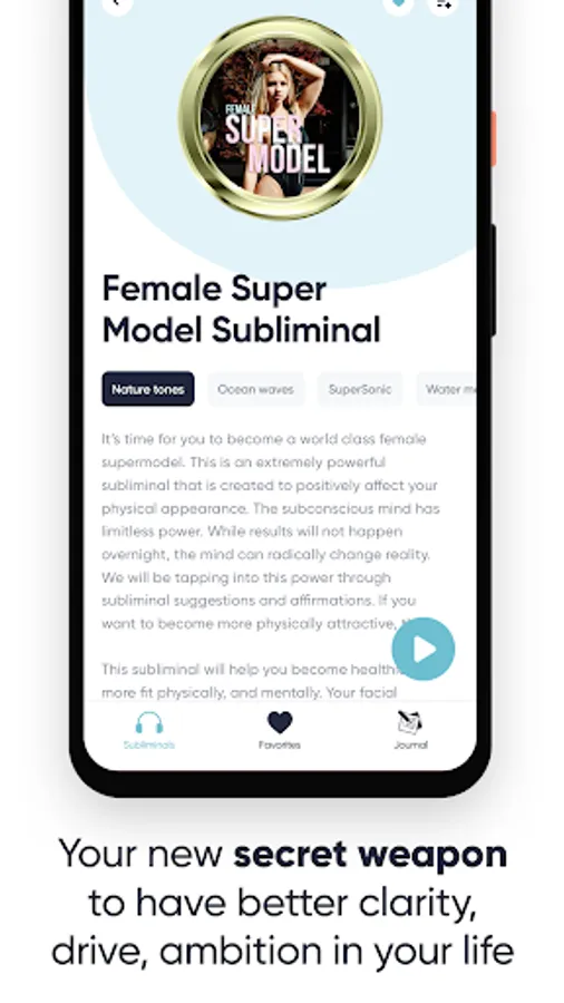 Not only that, we are constantly adding NEW subliminals, NEW primers, and meditations/hypnosis are coming soon! Our app includes a daily journal entry to keep track of your progress, playlists, favorite section, and MANY other added bonuses.