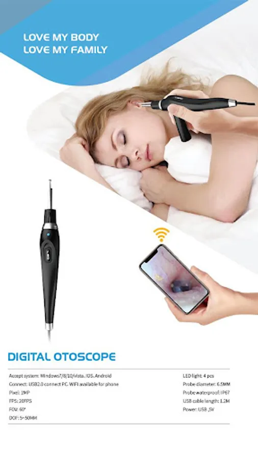 Ai Scope is for individual ear and oral design of personal care products, by connecting the AijR visual otoscopes, can see the inside of the ear in real time; by connecting the AijR visual dental mirror, you can clearly see the internal teeth and oral conditions.
