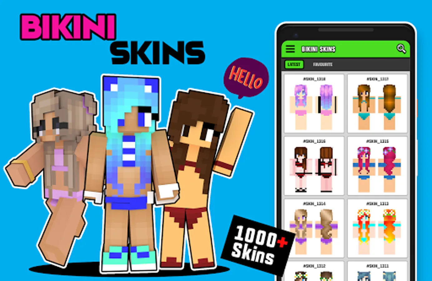 Best Bikini Skins NEW collections for minecraft PE (Pocket Edition) moreover 1000+ skins for girls and boys with completely free! Search and save your favourite best Bikini skins then install our skin packs for your minecraft world with instant install in one click and play with your coolest friends!