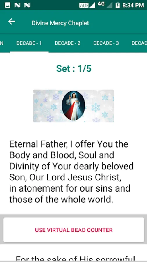 The Chaplet Of Divine Mercy has the following options: