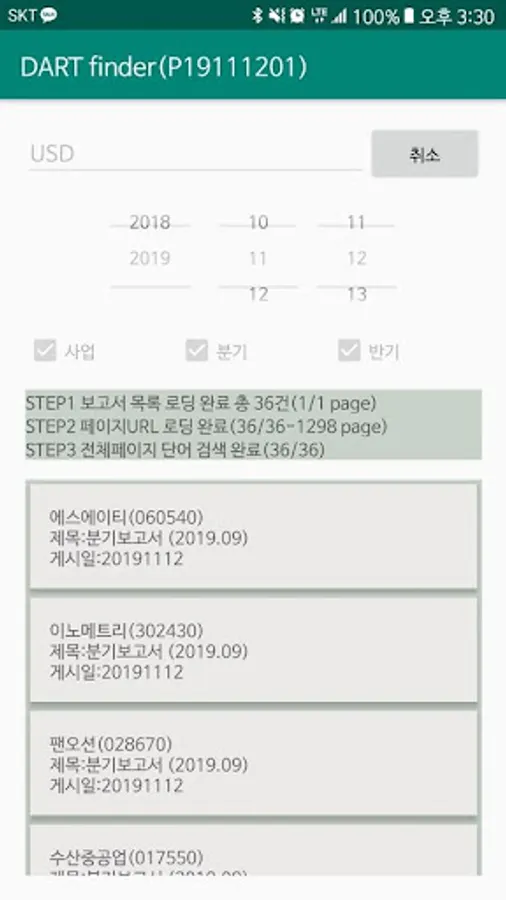 DART 보고서 단어 검색 Screenshots