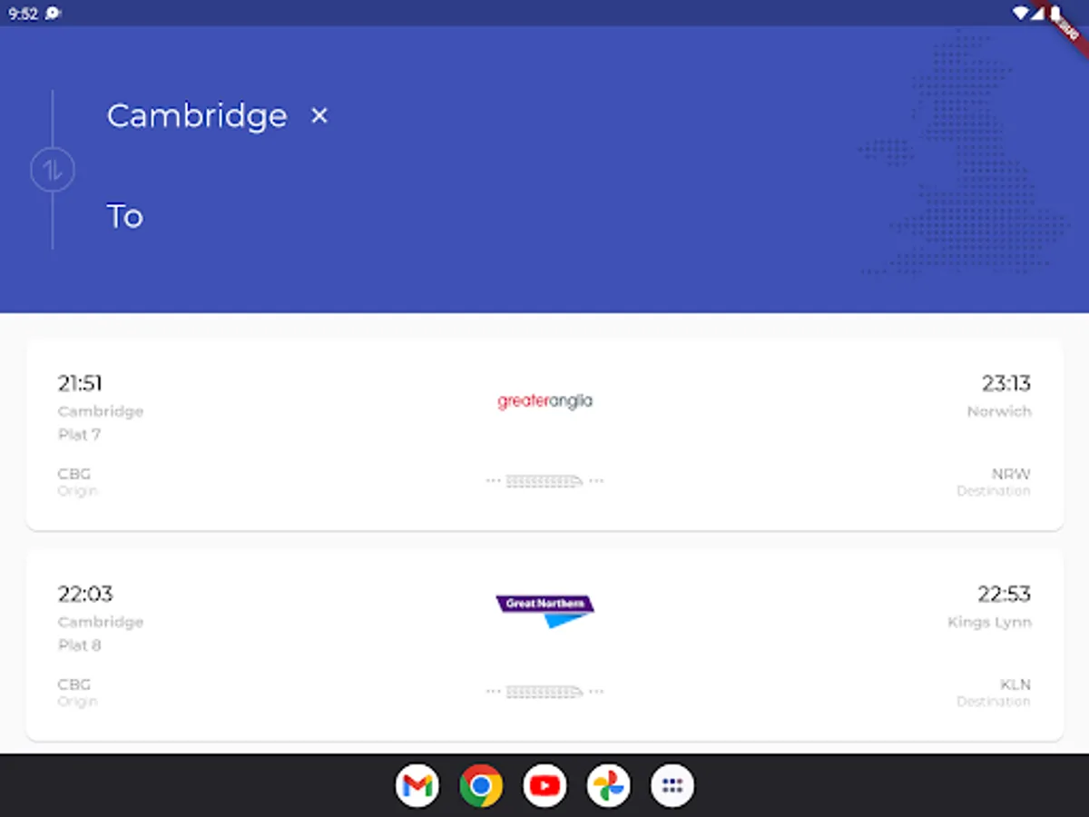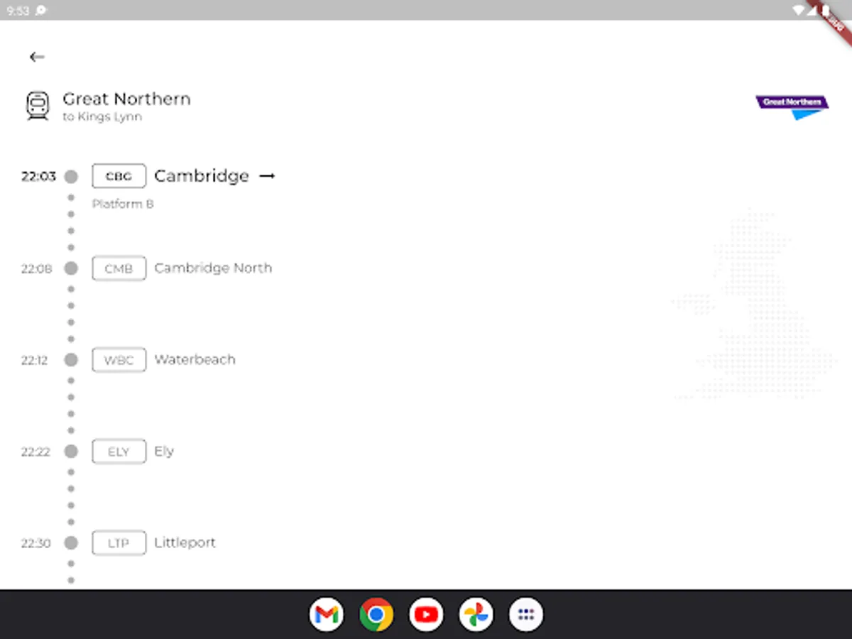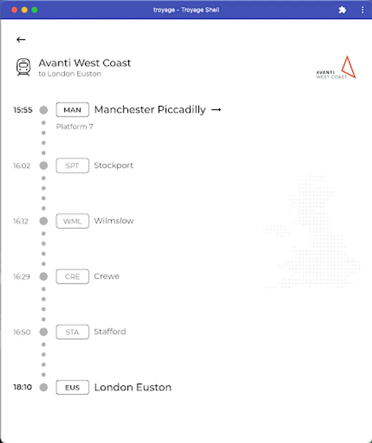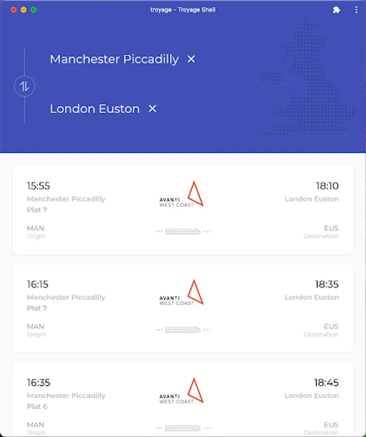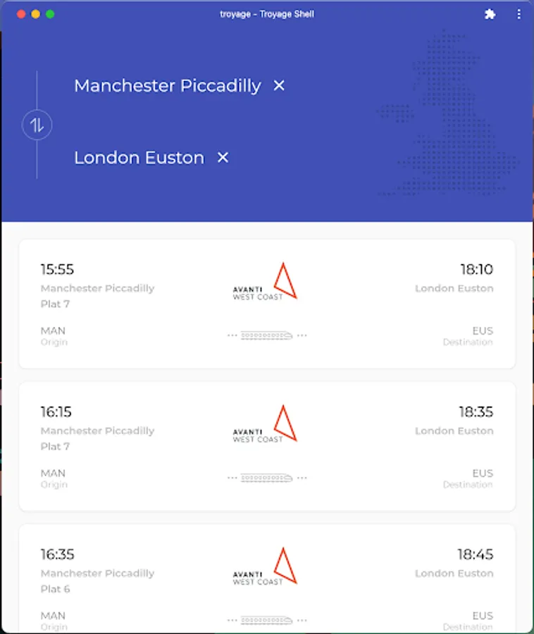 Find realtime departing and arriving trains at stations. Plan a direct train journey between city A and B.