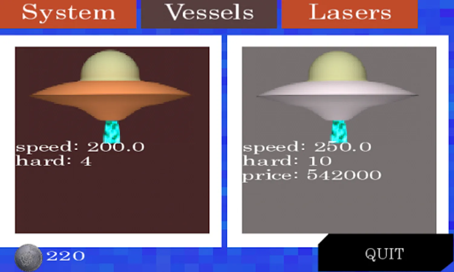 In the Comet Destroy game you have the option to purchase space aiutre vessels depending on whether you need the money, and also you can buy new laser with a different power destruction
