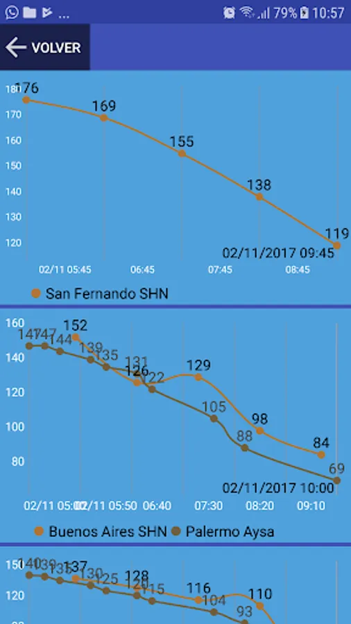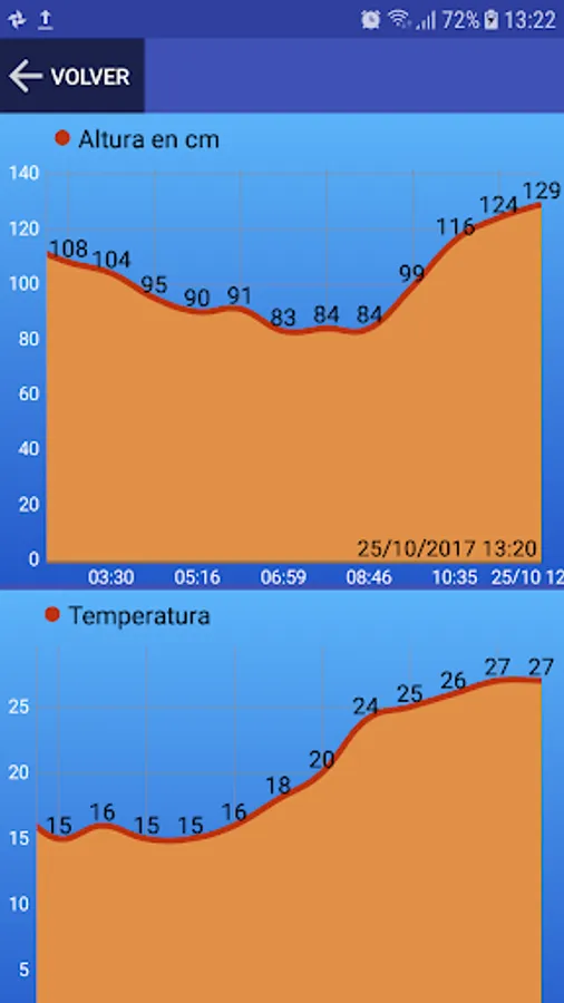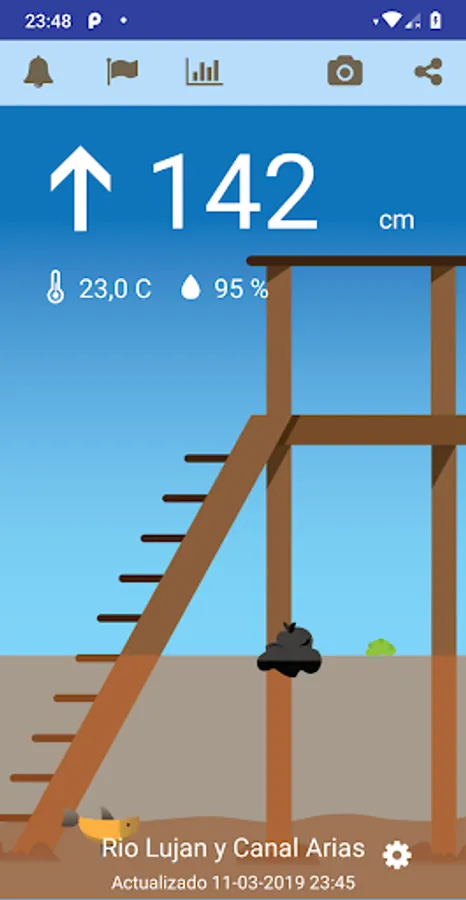 The measurement is made with our digital tide gauge located near the confluence of Rio Lujan and Canal Arias and the level is shown in centimeters using the same reference as the prefecture hydrometer of Dique Lujan.