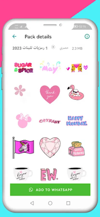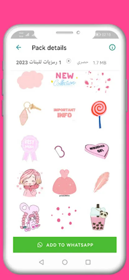 The "Girls' Symbolic Stickers" application is a unique and innovative application that aims to provide a wide range of stickers for girls on the WhatsApp platform. This application features attractive and colorful designs that cater to the interests of girls and contribute to enhancing the experience of communication and personal expression through distinctive icons.