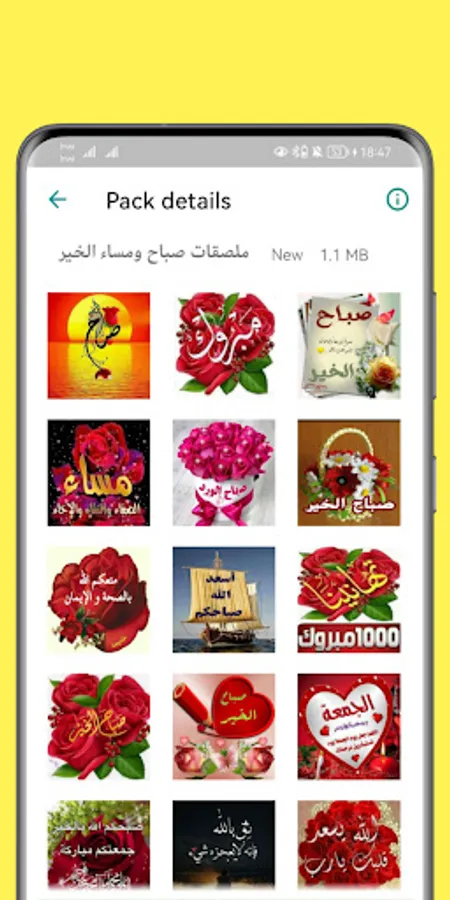 تحديثات منتظمة: يتم تحديث مكتبة الملصقات بانتظام لتوفير تصاميم جديدة ومناسبة لمختلف المناسبات والأحداث. يمكن للمستخدمين الاستمتاع بالحصول على ملصقات جديدة ومنعشة لتشاركها مع أحبائهم.