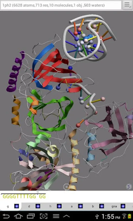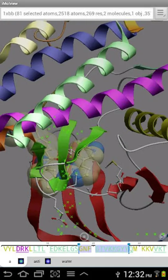 iMolview lets you browse and view in 3D protein and DNA structures from Protein Data Bank, drug molecules from DrugBank, and small molecules from Pubchem. Search for drug names like 'ibuprofen' or 'gefitinib' in DrugBank, or proteins like 'insulin' or 'thyroid receptor' or pdb code in PDB. Information associated with each molecule in these databases is also at your fingertips. Sync and view your own structure files via iMolview folder on your sdcard. Molecular view can be customized with a rich set of molecular representations (wires, balls-and-sticks, space filling, ribbon diagrams, molecular surfaces) and various coloring schemes. Select residues, atoms or chains and color or change their representations individually. Set 'inertia' to the maximum and let your molecule spin in 3D indefinitely.