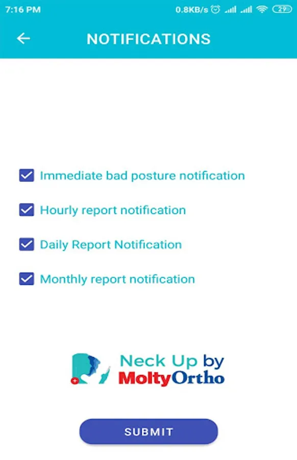 Neck Up is an intuitive app powered by MoltyOrtho that helps you detect bad postures that cause neck pain and damage sustained from looking down at your cell phone, tablet, or other wireless devices too frequently and for too long.
