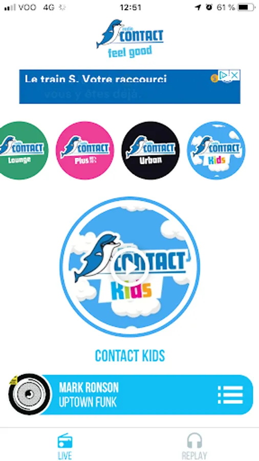 - Contact Kids: children's radio. Hits for Kids. Hits and Disney / Pixar universe (B.O. movies) during the day. Calm to fall asleep at night.
