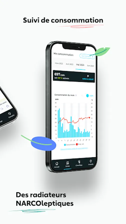 Thanks to the connected box, you have an analysis thanks to the data sent every 10 minutes (even more efficient than the LINKY communicating meter). You have the details on all your heating devices and this will allow you to control and further optimize your electrical consumption, and to save energy.