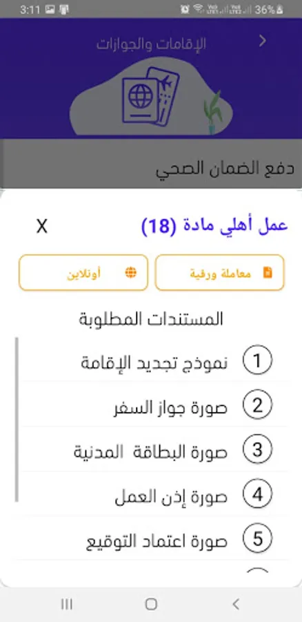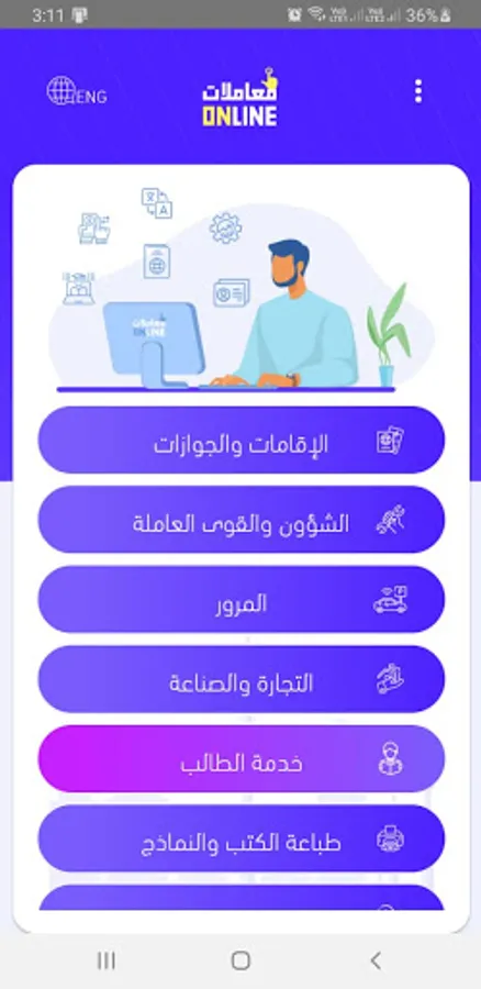 1- معاملات "الإقامات وشؤون الهجرة" والتي يستطيع المستخدم بواسطتنا إنجاز كافة معاملاته المتعلقة بالإقامات سواء كانت إقامات للخدم أو العقود الأهلية أو الالتحاق بعائل وما يستجد من المعاملات.