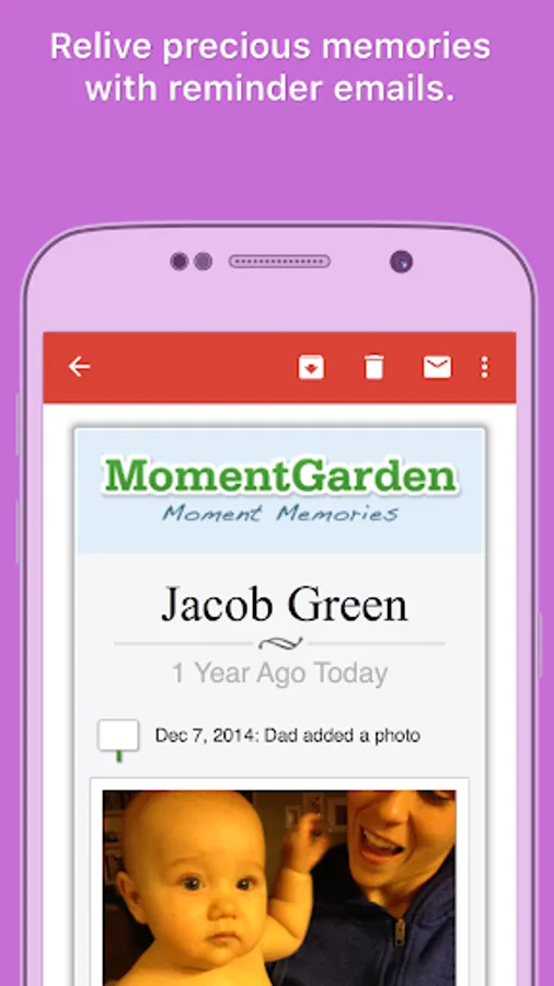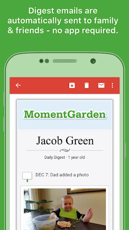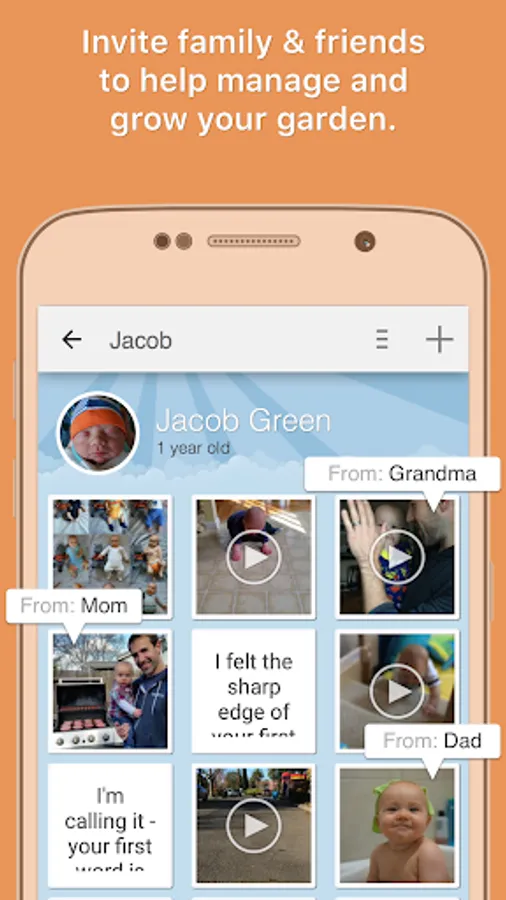 Moment Garden is simple to use, private and centered around your child. Only the people you invite can view or add memories to your child's garden. When you add new memories, your family and friends will receive the latest pictures or stories right in their inbox. Grandparents LOVE seeing the moments in their email. This will absolutely make their day!