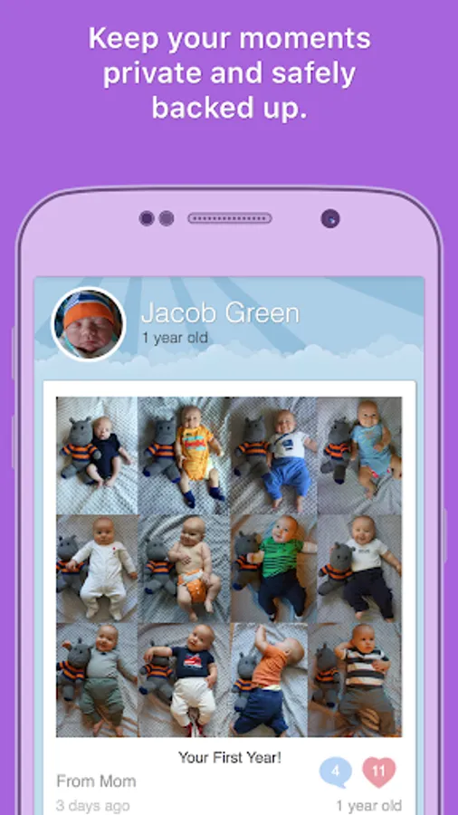Moment Garden helps you save and relive your baby’s special moments and privately share them with your closest family and friends. With a single click, you can even turn your child’s memories into a Moment Book, a beautifully printed photo book - that baby book you never had time to finish! Don't risk losing any stories, pictures, videos or funny things your children say: start building your Moment Garden today!