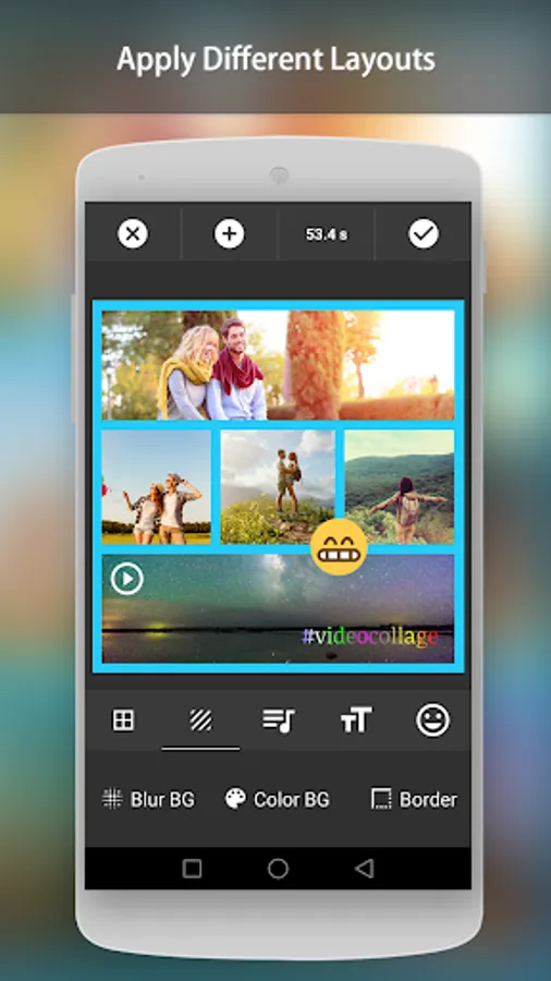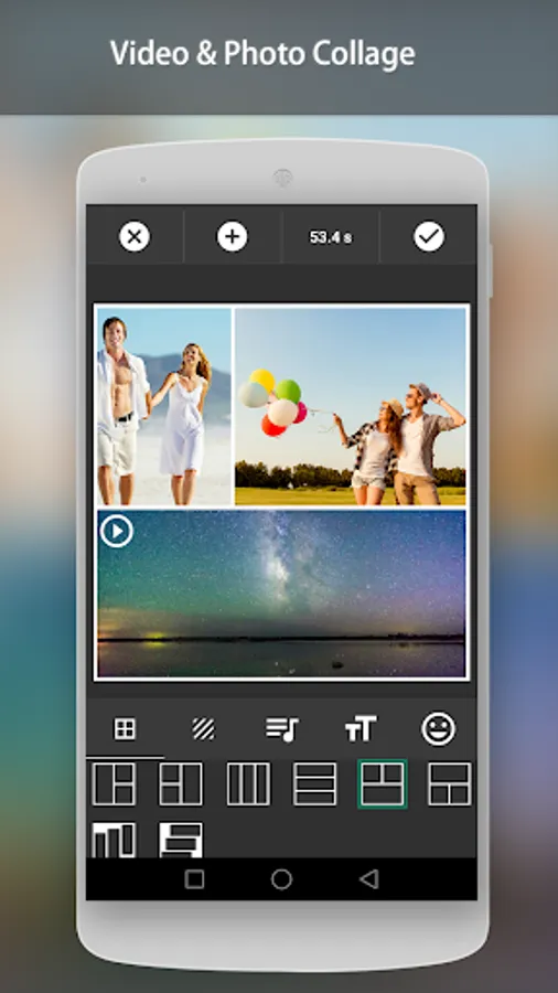 With Video Collage Maker, you can mix and merge multiple videos and photos together, you can add music/audio, add text and stickers. Create a collage video and share with your friend.
