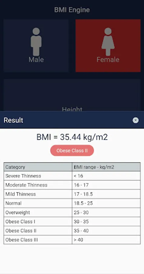 BMI Engine is a free app that allows you to monitor BMI and percentage of fat in your body.