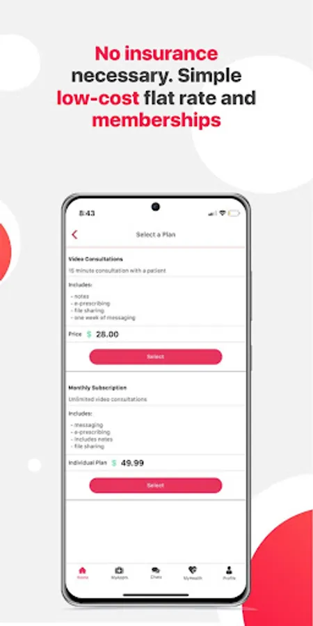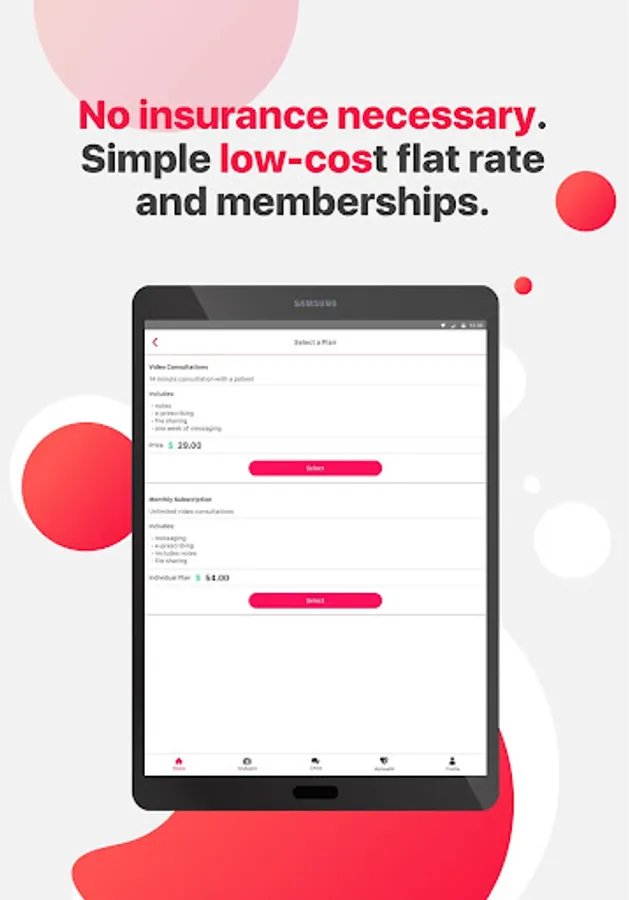 Open the app and select the provider to schedule an appointment. Our consultations are a flat fee and we explain any costs before your visit. Review your medical chart and chief complaint before confirming the appointment.