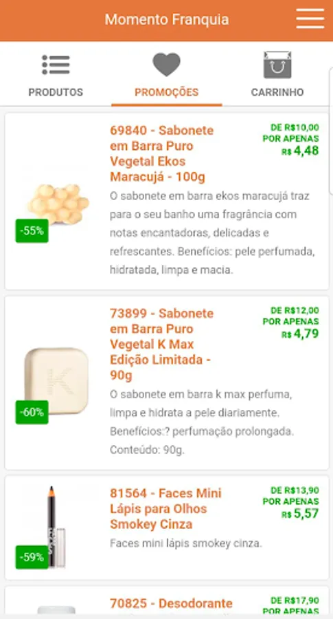 Natura store located inside the Carrefour Homero Thon, in Santo André. We deliver to the region. If you prefer, you can schedule pickup at the store.