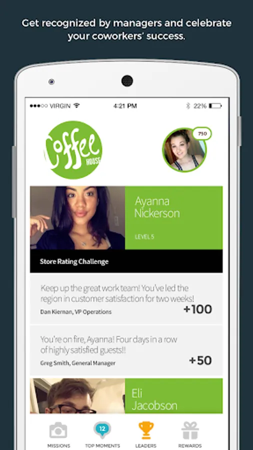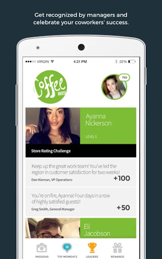 It’s easy for great performance to fall through the cracks. With ShiftOne, you earn points and achievements for exemplary work — and your top moments are broadcast to your coworkers and managers in a live feed.