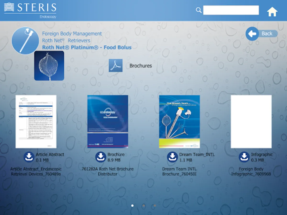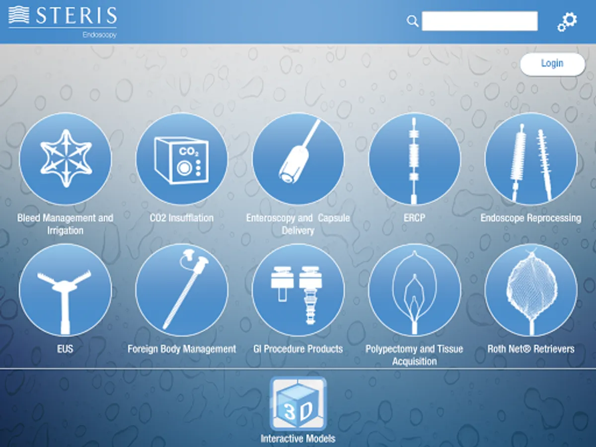 This app is a sales and customer service support application offering access to technical data, brochures and images to the complete portfolio of Endoscopy Products from STERIS.