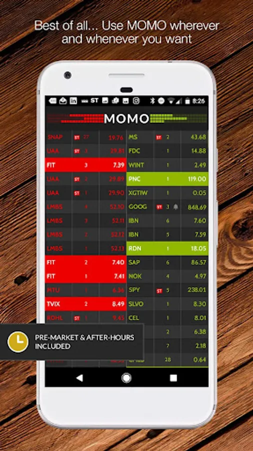 Why MOMO? As active traders, we grew tired of being bound to our desks because we didn’t have the mobile stock tools needed to help us effectively track the market. We built MOMO to help us discover opportunities on the go, monitor after-hours activity, and occasionally go out for lunch.