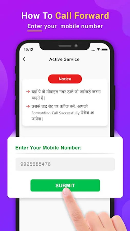 * First Enter Mobile Number to Whom you Redirect call in Active Service.