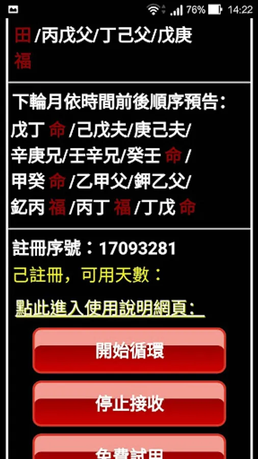 8:目前驗証大部份對自己有利的天干都是人生中較好的時刻,歡迎會員使用後有任何較好的利用方式隨時與版主分享。