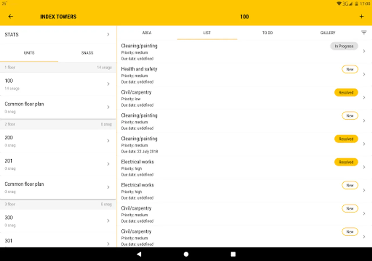 Snagging app for building inspection and management. Includes handover features and OA management.