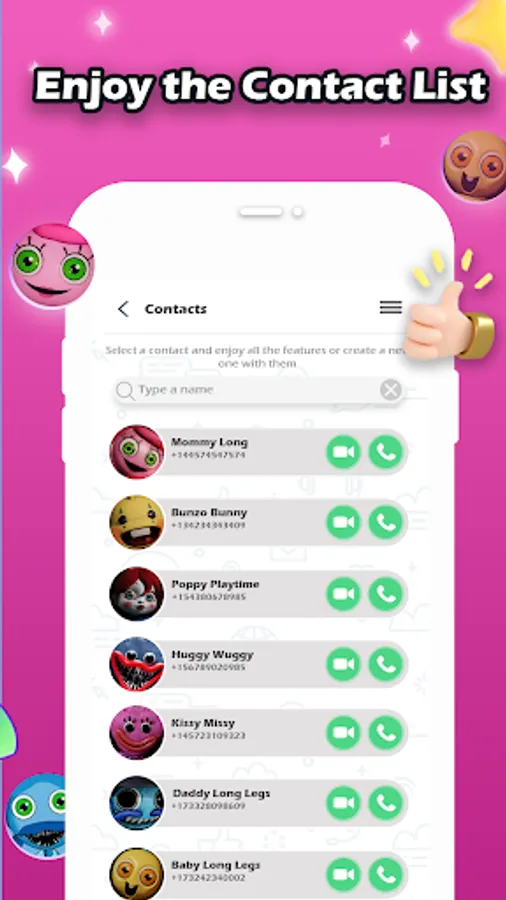 Call from mommy long legs chat and Video call is a simple application directed to Huggy - Wuggy fans for all age, it very easy to used just choose your option calling and create a wonderful discussion chat with kissy missy.