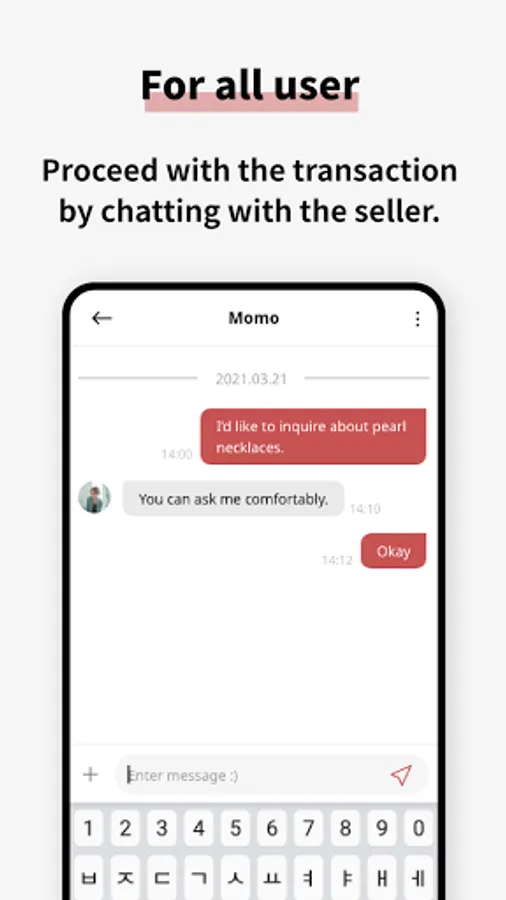 -악세사리 도매 상인과 바이어는 실시간 채팅 기능을 통해 거래와 관련한 소통을 진행할 수 있습니다.