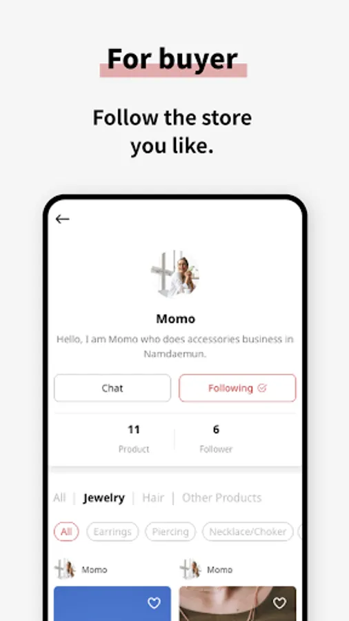 -바이어는 팔로우 기능을 통해 내가 원하는 상점의 물품을 피드형식으로 확인할 수 있습니다.