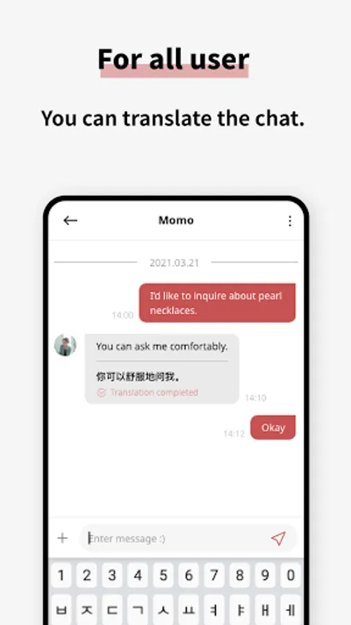 -채팅의 실시간 번역을 통해 원활한 소통을 가능하게 합니다.
