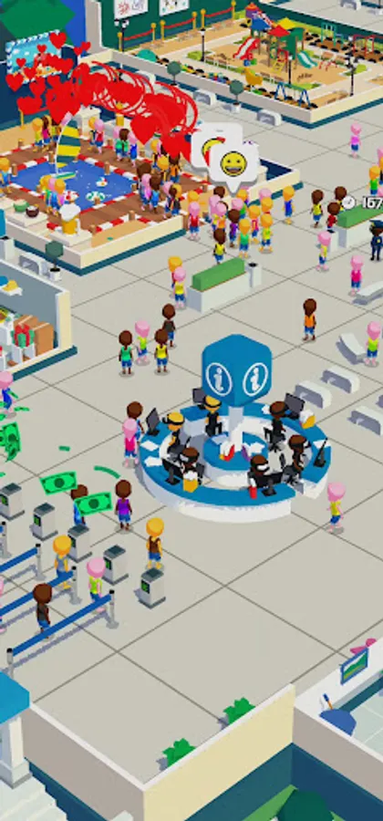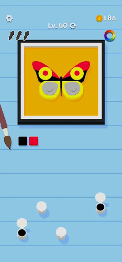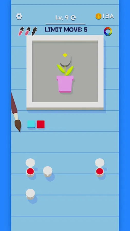Coloring and completing paintings to earn coin revenue, and upgrading and managing opened theme halls to attract more visitors.
