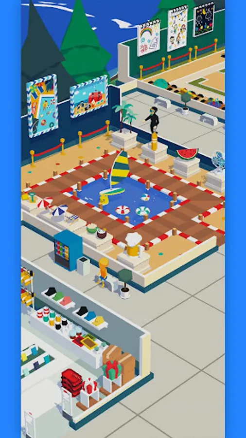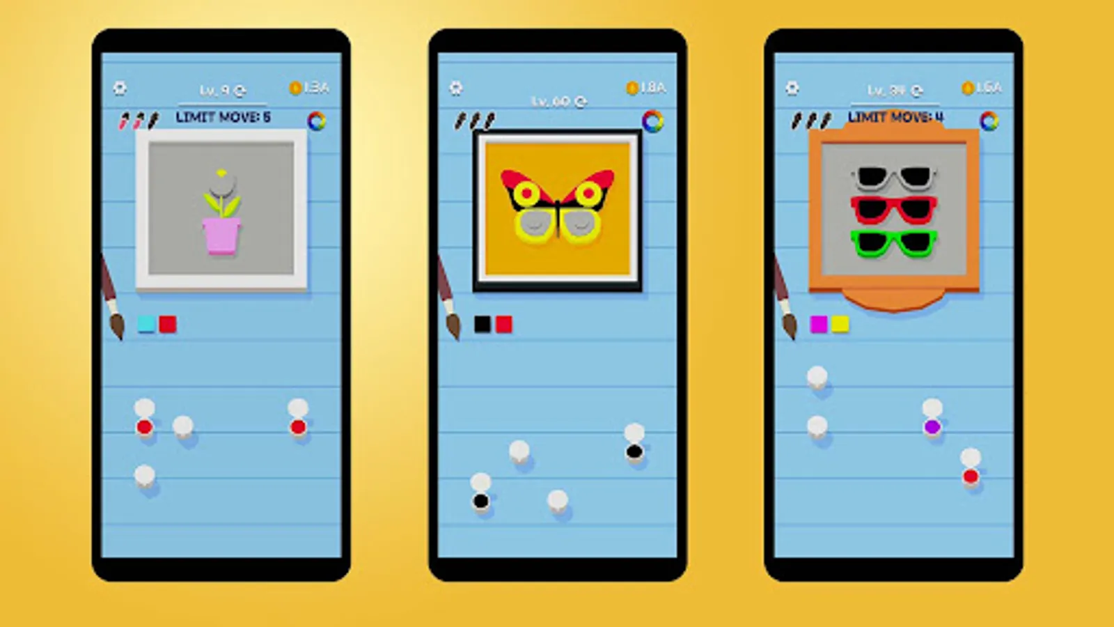 Coloring and completing paintings to earn coin revenue, and upgrading and managing opened theme halls to attract more visitors.