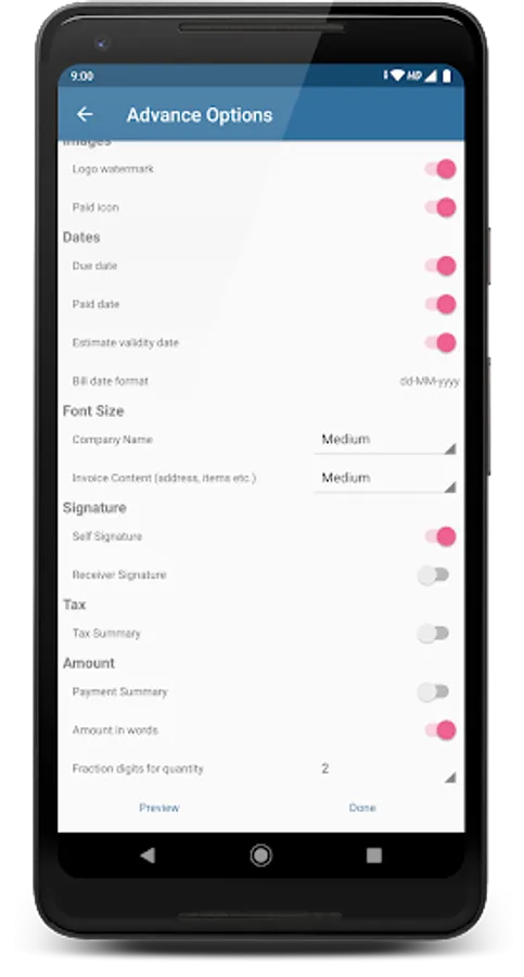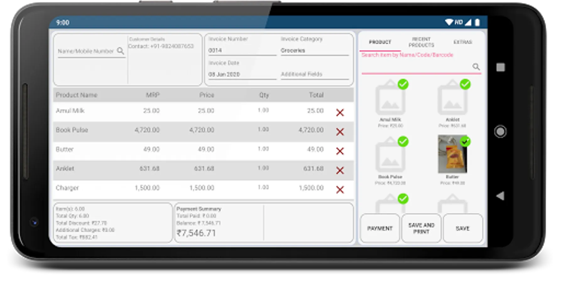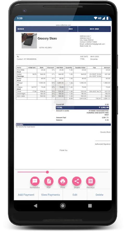 - Generate Invoices on the go from your Android Device.